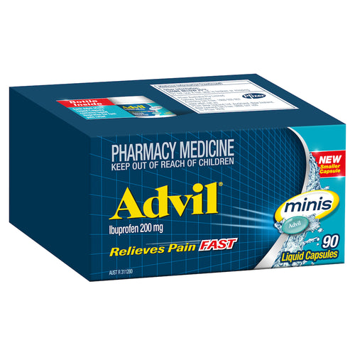 Advil Minis Liquid Capsules are absorbed fast** and are 23% smaller* for easy to swallow fast relief of headaches and many other data-types of pain. Advil Minis also come in a convenient carry bottle.