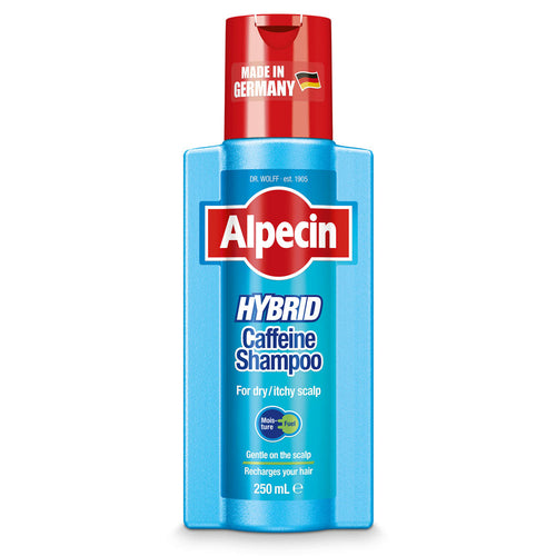 The Alpecin Hybrid Caffeine Shampoo contains a gentle yet powerful hybrid technology with a Moisture and Fuel effect: The gentle shampoo formula helps to moisturise and soothe senstitive or itchy scalps, while the "fuel" in form of caffeine recharges the hair, promoting powerful and strong hair. The shampoo is suitable for dry dandruff, and should be used daily and left on the hair for 2 minutes. With its unique formula Alpecin Caffeine Shampoo helps to support natural hair growth.