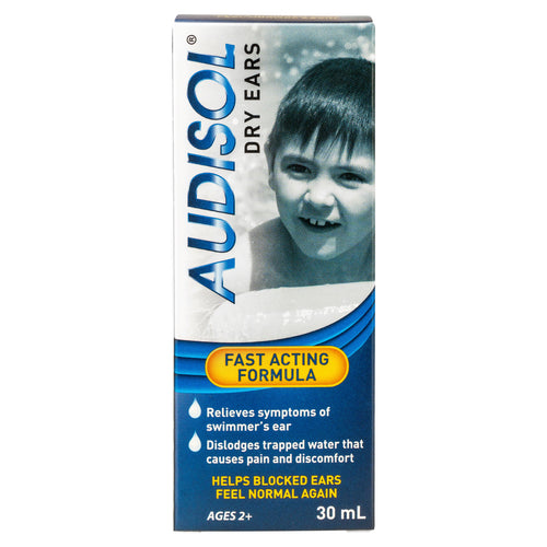 AUDISOL Dry Ears provides an effective solution for the removal of water from the external ear canal. Its 30ml formula is specially designed for both adults and children over the age of 2, making it a versatile choice for families. Ideal for situations such as after swimming or bathing, its fast-action formula quickly removes trapped water, preventing discomfort and potential ear problems.