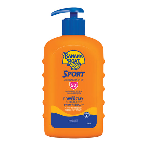 Banana Boat® Sport Lotion is a high-performance sunscreen with Powerstay Technology™, that provides high endurance versus sweat and water for the sport enthusiast and active individual who want protection that will stay on while they play on. This lightweight, non-greasy formula is perfect for the sweatiest outdoor activities with a very high UVA/UVB protection and 4-hour water-resistance so that you can protect the fun.