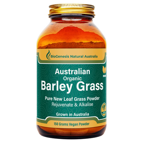 BioGenesis pure young Barley Grass leaf powder contains an abundance of chlorophyll, vitamin C, rich in Calcium, Potassium, and essential enzymes and antioxidants. It is sustainably grown outdoors in mineral rich organic soil that has been Certified Organic by Australia’s National Association for Sustainable Agriculture (NASAA). The fresh green shoots are usually harvested 7-10 days after sprouting at their nutritional peak, prior to maturing into Barley grain. Our freshly harvested Barley Grass is dried using low temperature drying technology to help preserve its potency and retain its natural minerals, vitamins, enzymes and phytonutrients and retains its fresh taste. It is then fine milled into an ultra-fine powder which increases bioavailability and dissolves easily into water or any smoothie of your choice.