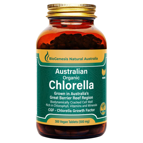 BioGenesis Organic Chlorella is a nutritional powerhouse containing high levels of chlorophyll, beta-carotene, protein, minerals essential fatty acids, a natural source of Iron and vitamins including D. It is nutrient rich and the only algae plant source that contains an active bioavailable vitamin B12.
