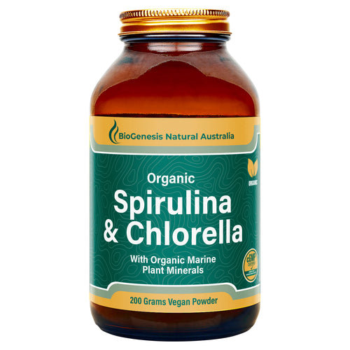 Biogenesis’ Organic Spirulina and Chlorella blend combines two of nature’s most prized microalgae, containing a wide spectrum of bioactive nutrients including chlorophyll, protein, vitamins including D and B12, minerals, including magnesium, and a natural source of iron. Chlorella is more nutrient-rich than spirulina, containing higher levels of chlorophyll, Omega-3 fatty acids, iron and is the only source of Chlorella Growth Factor (CGF). Our organic marine plant minerals are derived from Lithothamnion Calcareum. It is a nutrient rich multi-mineral complex whole food with a high bioadaptive source of calcium, magnesium, manganese, sodium, Iodine selenium, strontium, and boron and over 70 other marine trace minerals. Due to its organic plant source its high bioavailability lies in its unique composition and porous, honeycomb structure allowing for greater bodily absorption and uptake. It is sustainably harvested for us in the pristine Atlantic waters off the northern coast of Iceland.