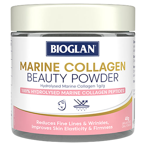 Bioglan Marine Collagen Beauty Powder contains Hydrolysed Collagen Peptides derived from wild ocean caught fish rich in Type 1 Collagen – the most abundant collagen protein in the human body. When ingested, this powder works deep beneath the surface of the skin to stimulate collagen fibres and support the structure of the Dermis at a cellular level. Get your glow black with Bioglan marine collagen beauty powder for reduced wrinkles, and a firmer complexion.