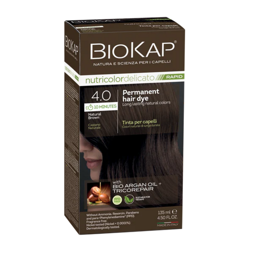 Experience effortless colour transformation with BioKap® Rapid 10 Minute Hair Dye. From BioKap® Research and Development comes a new patented formula that locks in colour and reduces application time to just 10 minutes through the inclusion of extra pigment. Formulated with a unique blend of natural ingredients, including nourishing organic Argan Oil and protective Tricorepair® Complex, this dye delivers rich, long-lasting colour while caring for your hair. Its advanced, gentle formula ensures a uniform, natural finish, free from ammonia and harsh chemicals.