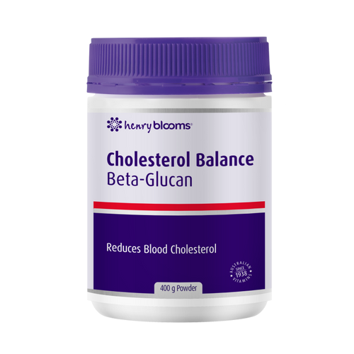 Henry Blooms Cholesterol Balance Beta-Glucan powder is a natural remedy to reduce blood cholesterol. It contains beta-glucan, a concentrated, highly beneficial soluble fibre from oat bran, which forms a gel and binds to cholesterol inside the intestinal tract. Beta-Glucan has been scientifically researched and shown to reduce blood cholesterol.