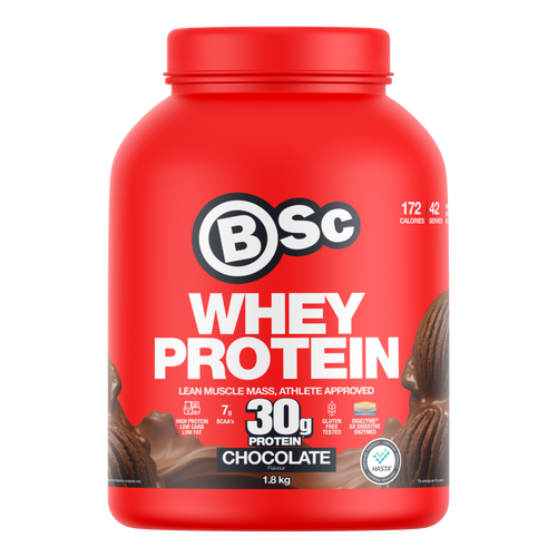 BSc Whey Protein is formulated with a blend of whey protein concentrate and whey protein isolate to provide your muscles with the essential building blocks they need to grow and recover. Plus, we've added BCAAs and L-Glutamine to promote muscle repair, reduce post-workout soreness and accelerate your recovery process.