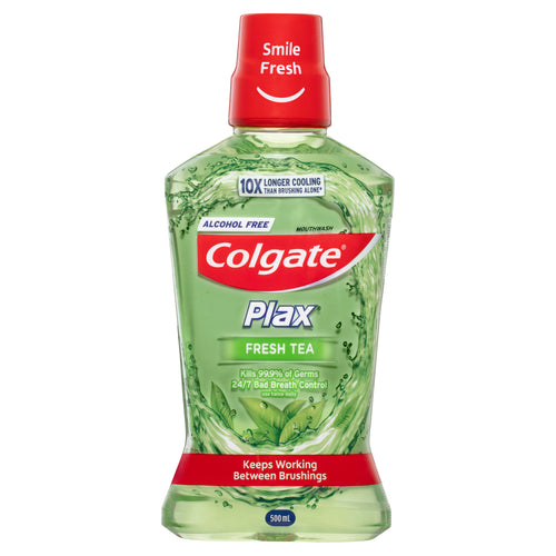 Colgate Plax Antibacterial Alcohol Free Mouthwash kills 99.9% of germs and provides 24/7 bad breath control*. Colgate Plax provides a cooling sensation that lasts 10x longer than brushing alone. Use twice daily for a healthier, fresher mouth.