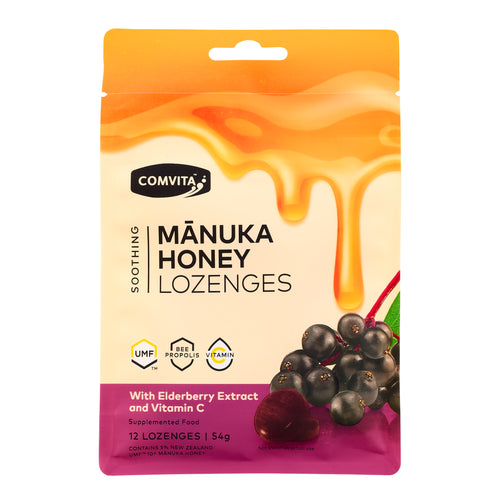 Comvita Manuka Honey Lozenges combine the unique qualities of New Zealand UMF 10+ Manuka honey, Vitamin C, Propolis and Elderberry extract to provide a soothing taste anytime of day.