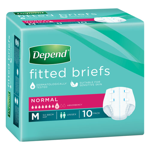 Depend Briefs are suitable for day or night use for heavy urinary incontinence. Also suitable for bowel incontinence. Features a full length wetness indicator. Ideal for individuals with limited mobility.
