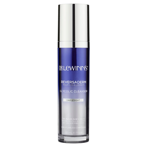 Reversaderm Glycolic Cleanser is a highly effective cleanser containing 12% Glycolic Acid, an Alpha Hydroxy Acid, for a deep micro–exfoliating cleanse. Effortlessly lifts away daily residue, resurfaces the upper skin layer to remove dead skin cells, unclogs and minimises pores.