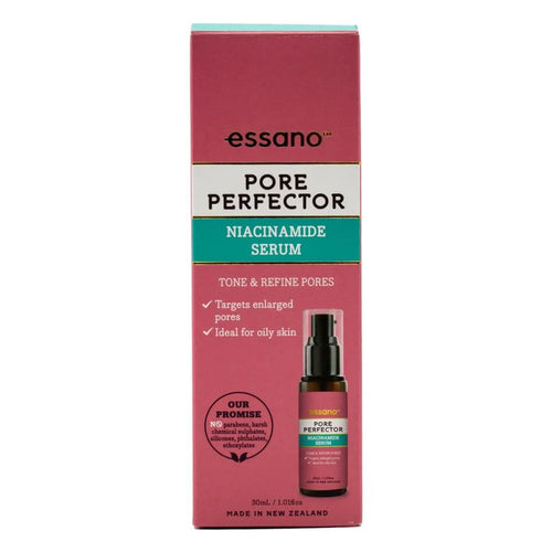 Essano's Pore Perfector Niacinamide Serum is expertly formulated to tone and refine your pores, resulting in a smoother, more balanced complexion. Key ingredients include Niacinamide, known for its ability to reduce the appearance of pores and even out skin tone, and Witch Hazel, a natural astringent that helps tighten pores and soothe the skin. This serum is ideal for everyday use and can be effortlessly layered under moisturisers or makeup. Whether you're focusing on specific areas or applying it as an all-over face serum, it works to leave your skin looking flawless and radiant.