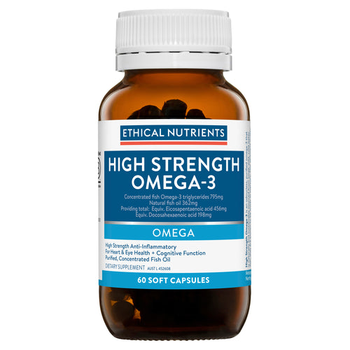 High Strength Omega-3 is a supplement for mild arthritis, cardiovascular health and cognitive function, helping provide anti-inflammatory relief, support a healthy heart, and maintain healthy blood lipids, eye health and nervous system function.