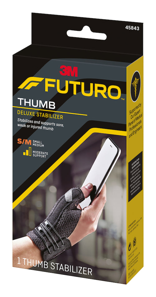 Designed to stabilise and support sore, weak or injured lower thumb joints. Helps stabilise the lower thumb joints. Allows free movement of the remaining fingers.