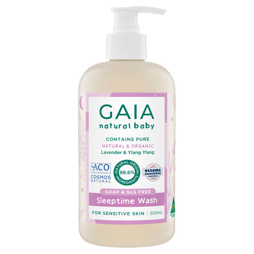 GAIA Natural Baby Sleeptime Wash contains 98.6% natural origin ingredients