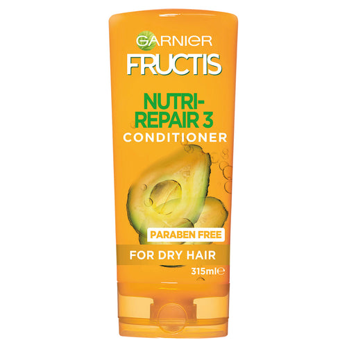 Fructis Nutri-Repair 3 Conditioner contains the unique strength of 3 powerful fruit oils: Olive oil, avocado oil and shea to combat dry hair. It nourishes and repairs hair, leaving it softer and shinier after every use. Paraben free and dermatologically tested.