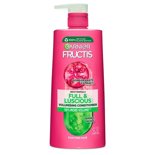 Boost volume and strength with Garnier Fructis Full & Luscious Conditioner. When used with the Shampoo, our Amino Acid-powered technology adds density to fine hair, while Pomegranate Extract hydrates without weighing it down. Our formula is mineral oil-free, artificial colorant-free, dermatologically tested, and pH neutral for the scalp. Experience 58% more volume** with Garnier Fructis.