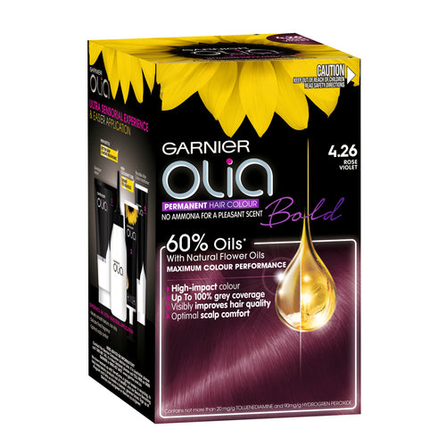 Oil-powered hair colour with no ammonia. The 1st permanent home hair colour powered by oil, not ammonia, to reduce damage. Olia's Oil Delivery System Technology uses oils to propel the colour deep into the hair fibre to give you maximum colour performance and visibly improve hair quality. Hair is 35% smoother with 3x more shine*.