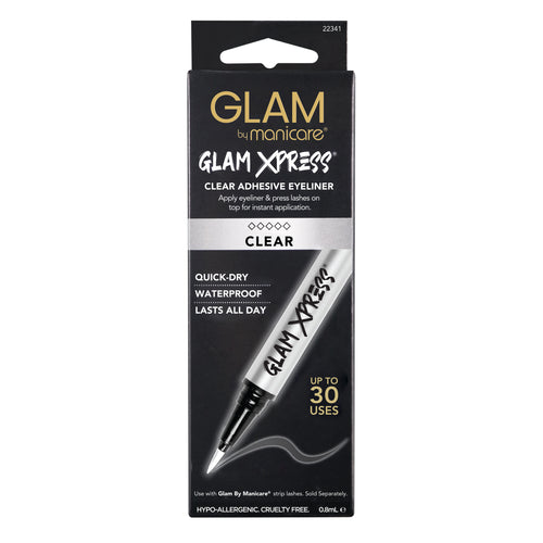 Glam By Manicare® uses a tech smart clear eyeliner with lash adhesive for seamless and express application. Simply apply Glam Xpress® clear eyeliner along top of the lash line and press strip lashes on top for instant application.