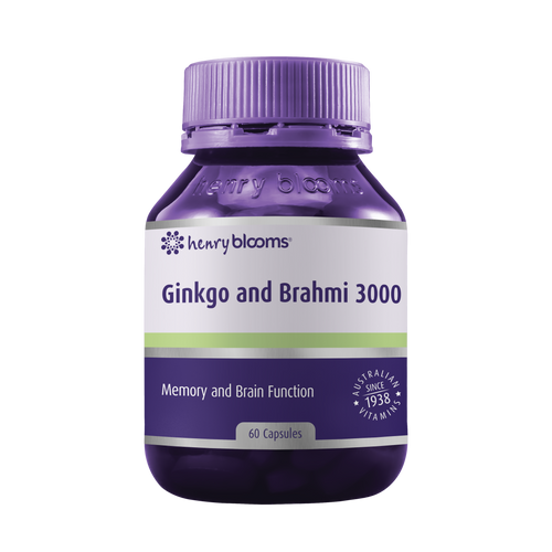Henry Blooms Ginkgo and Brahmi 3000 is a high potency memory support formula that supports brain function and helps: