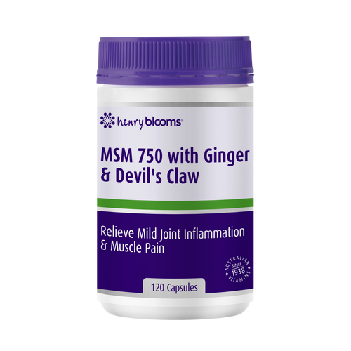 Blooms MSM 750 with Ginger & Devils Claw may assist in the management of pain and inflammation associated with arthritis or exercise, and may provide temporary relief to sore joints and muscles.