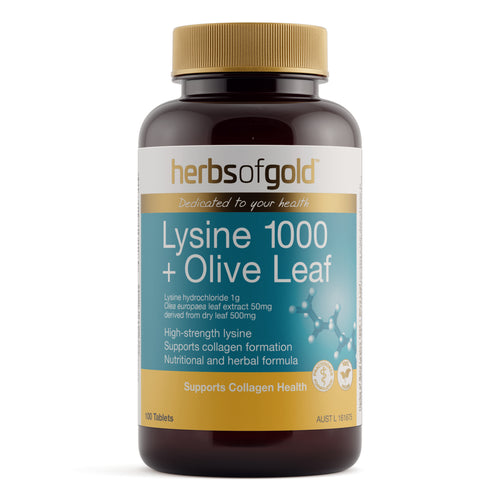 Lysine 1000 + Olive Leaf contains 1000mg of the amino acid lysine plus a standardised extract of Olive leaf.