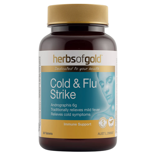 Cold & Flu Strike contains Elderberry, traditionally used in Western herbal medicine to relieve symptoms of common colds and flu, including mild fever.