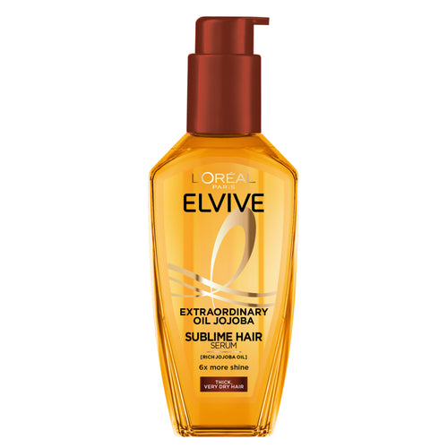 L'Oréal Paris Elvive Extraordinary Oil Treatment Jojoba is a hair oil specifically designed for thick, very dry hair. Enriched with rich jojoba oil, the formula deeply penetrates the hair fibre for intense nutrition with no weigh down, satin shine and perfect manageability.