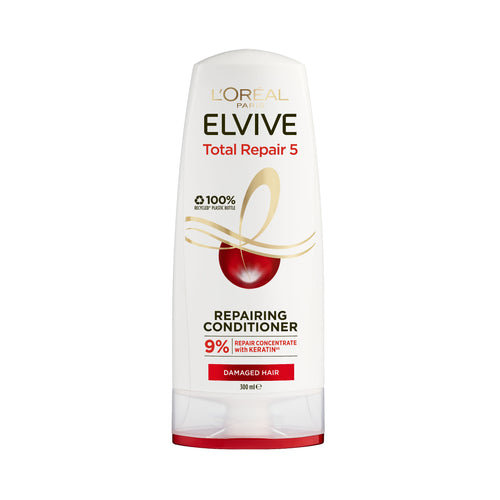 Strawlike feeling, brittleness, dehydration, stiffness and split ends. L'Oréal Paris Elvive Total Repair 5 Conditioner, enriched with 9% Pro-Keratin and Ceramide, repairs them all!
