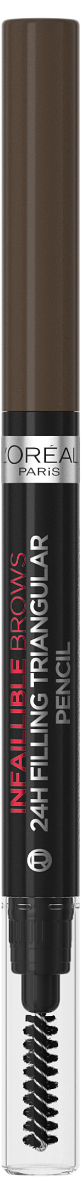 If you want to get perfect, natural-looking eyebrows, this waterproof eyebrow pencil by L'Oreal Paris is a must-have. - Its powder-to-liquid formula creates a natural matte finish and fills the brows - A mistake-proof triangular tip helps define and fill eyebrows easily - The built-in brush creates the eyebrow shape you want The result? This long-lasting eyebrow pencil makes your brows look flawless for up to 24 hours. Waterproof, smudge-proof, transfer-proof
