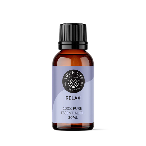 Relax Pure Essential Oil creates a calming atmosphere for a peaceful bedtime ritual. This 30ml blend of Lavender, Patchouli, Mandarin, Marjoram, Jojoba, Geranium, and Chamomile essential oils provides soothing properties for a restful experience. Use it to promote relaxation and aid in restoring your mind and body.