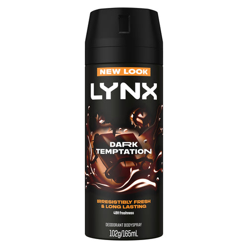 LYNX Dark Temptation Deodorant Body Spray offers the sweet scent of chocolate. 100% fresh fragrance means you’ll smell irresistible – even when you sweat. This is the data-type of chocolate that won’t melt away when things get hot. Our zinc technology fights odour and odour-causing bacteria* to give you 48-hour protection. LYNX Dark Temptation Deodorant Body Spray will give you all-day confidence so you can forget about odour and focus on what really matters.