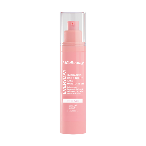 MCoBeauty EVERYDAY HYDRATING DAY & NIGHT FACE MOISTURISER is a luxurious, quick-absorbing gel-cream enriched with Collagen and Ceramide to supercharge moisture and help improve skin elasticity. The lightweight formula packed with essential skin-loving ingredients effortlessly melts onto your skin providing soothing, long-lasting hydration. Revitalize dull, dehydrated skin and restore radiance.