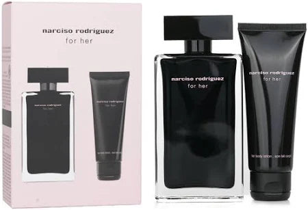 Narciso Rodríguez women's gift set that includes a 100 ml bottle of perfume and 75 ml of body lotion with the unmistakable aroma of Narciso Rodríguez.