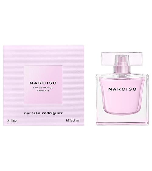 Narciso Eau de Parfum Radiante by Narciso Rodriguez is a woody musky fragrance for women. This scent envelops you in a sensation of transparent purity, featuring floral top notes of clove and orange blossoms, with a heart of white vetiver and cotton flower. The signature heart of musc blends with sensual base notes of abstract woods, creating a soothing and relaxing fragrance experience.
