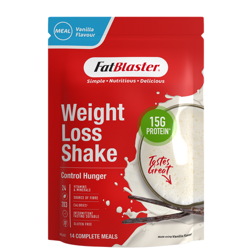FatBlaster Weight Loss Shakes are nutritionally balanced meal replacement shakes that contain 15g protein^, 24 vitamins & minerals, are gluten free, and only contain 203 calories per serve^.