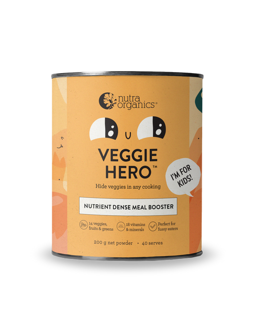 Struggling to get enough veggies into your fussy eater? Enter Veggie Hero! A heroic blend of 14 veggies, fruits and super greens designed for kids’ taste buds and parents’ peace of mind that easily hides in cooking.