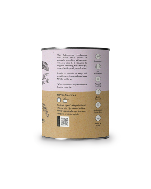 Small but mighty, our Beef Bone Broth powder makes a huge 3.1L / 15.5 cups of nourishing broth. Just add hot water!