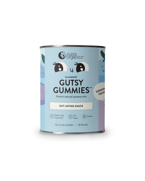 Gutsy Gummies Blueberry is a naturally delicious, low sugar snack to nourish kiddies and support their gut wellbeing^. A fun & nutritious alternative to sugar-laden jellies and artificial gummies is finally here!