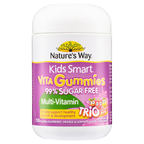 Nature’s Way Kids Smart Vita Gummies Multi-Vitamin comes in three fruity flavours and is 99% sugar free for a healthy and delicious nutritional boost. It contains key vitamins and minerals to support your child's healthy immune system function, as well as maintaining healthy bones, teeth, muscles, vision and eye health.