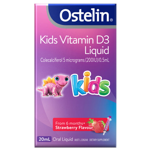 From Australia’s #1 Vitamin D brand, Ostelin Vitamin D for Liquid Kids provides 200IU of Vitamin D3 per 0.5mL dose and includes an easy to use measuring dispenser ensuring accurate dose delivery. Available in a tasty strawberry flavour Ostelin Vitamin D Liquid Kids can be administered directly into the infant/child’s mouth or added to their favourite drink. The Ostelin range is Halal accredited.