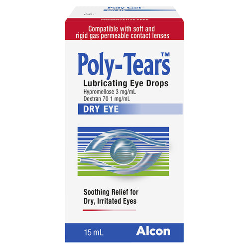 Poly-Tears Lubricating Eye Drops have been specially formulated to provide soothing relief from the symptoms associated with dry, irritated eyes.