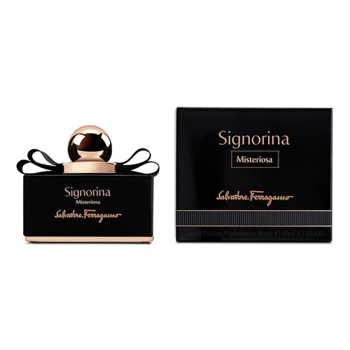 Salvatore Ferragamo frees the unpredictable facet of the Signorina woman with a new and mysteriously daring fragrance, Signorina Misteriosa. With distinctive top notes of wild blackberry and neroli, this chic fragrance is both unexpected and mysterious.