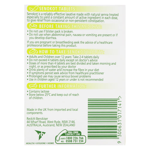 Senokot is a reliably effective laxative made with naturally derived senna, treated to yield a constant amount of active ingredient in each dose, to give relief from occasional or non-persistent constipation.