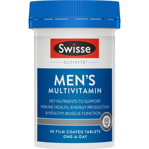 Swisse Ultivite Men's Multivitamin stands as an emblem of wellness for the man who values his health as much as his achievements. With an array of vitamins and minerals, this multivitamin contains B vitamins to support energy production and Zinc to aid cognitive function. The inclusion of Magnesium supports healthy muscle function and Vitamin D3 to help maintain healthy bones. With Antioxidant-rich ingredients like Selenium and Vitamin E helping to protect against free radical damage and Vitamin C to maintain healthy immune system function, you’ll be supported daily.