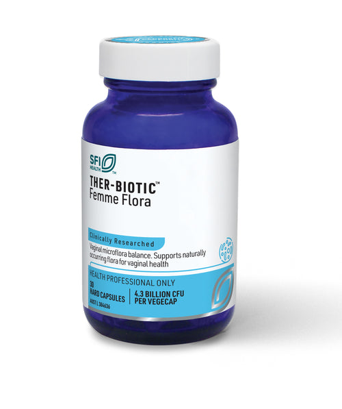 THER-BIOTIC™ Femme Flora contains four probiotic strains: Lactobacillus rhamnosus GR-1®, Lactobacillus reuteri RC-14®, Lactobacillus paracasei, L Casei, 431® and Bifidobacterium animalis ssp. lactis, BB-12®.