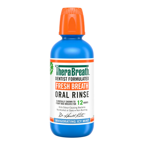 Powered by Oxygen the non-burning rinse is easy to use and helps keep your mouth feeling clean and refreshed throughout the day. Created in 1993 by Dr. Harold Katz, a dentist and bacteriologist, TheraBreath was originally developed to support his daughter’s oral care needs. Today, it is trusted by millions seeking an effective solution to fighting bad breath. Whether you're preparing for an important meeting, a night out, or simply want to feel your best, TheraBreath Icy Mint Oral Rinse helps you feel fresh and confident with every use.
