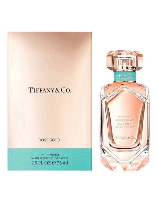 Tiffany & Co. Rose Gold Eau de Parfum for women draws inspiration from Tiffany's iconic diamond cuts and luminous metals. Housed in a brilliant glass bottle, the blush-tinted juice illuminates the bottle and is reminiscent of Tiffany's rose gold jewelry designs.