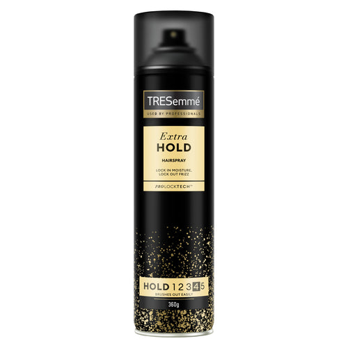 Powered by Pro Lock Tech, TRESemme Extra Hold Hairspray achieves maximum hold without stiffness, so hair still feels flexible. With a hold level of 4 out of 5, this humidity-resistant styling spray locks in moisture and locks out frizz, giving you the extra control and grip you need to tame flyaways. Its fast-drying, water-free formula leaves no sticky residue and brushes out easily, helping you wear your hair however you want and achieve a style that stays in place all day. For best results, prep your hair with your favourite TRESemme shampoo and conditioner. To apply TRESemme Extra Hold Hairspray, shake the can thoroughly before spraying evenly on dry hair from 20 to 30 cm away, one section at a time. For a stronger hold, layer more coats just where you want more control. For the ultimate body and fullness, flip your hair upside down and spray all over to set. Since our salon beginnings in 1948, TRESemme has been creating professional-quality hair care products to help you achieve the look and style you want, every time. TRESemme understands how great hair gives you the confidence to walk taller every day. Inspired by stylists and tested in salons, our products are designed to help you achieve salon-gorgeous hair every day. These are salon-quality formulas without the salon price tag. TRESemme does not test on animals and is PETA approved worldwide. To learn more about the range or access stylist tips and tricks, go to our website.