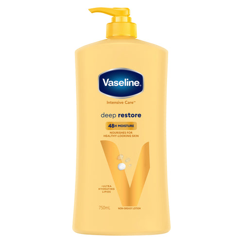Made with oat extract and ultra-hydrating lipids, Vaseline Intensive Care Deep Restore Body Lotion helps keep your skin looking healthy and moisturised – for a difference you can feel. Daily exposure to environmental triggers (like wind, lack of humidity and sun) can cause your skin’s natural moisture barrier to break down, allowing water to escape the skin. But the ultra-hydrating lipids in our Deep Restore lotion fortify the skin barrier and replenish moisture, allowing your skin’s natural barrier to recover. This body moisturiser is clinically tested to provide 90% more moisture (vs untreated skin). It absorbs fast without leaving any residue or greasy feel, delivering the nourishing care your skin craves. Use this dermatologist-tested body lotion daily on dry and rough skin to leave it stronger and noticeably healthier looking. Simply apply to your skin, preferably after a shower, and enjoy up to 48 hours of moisture. This Vaseline lotion bottle is made from 50% recycled plastic. Vaseline has a range of moisturisers to help restore, soothe and nourish all skin data-types. We believe skin care is essential for well-being. That’s why Vaseline is working towards giving everybody, everywhere, access to the skin care they need. Visit our website to learn more about our global partnership with Direct Relief.